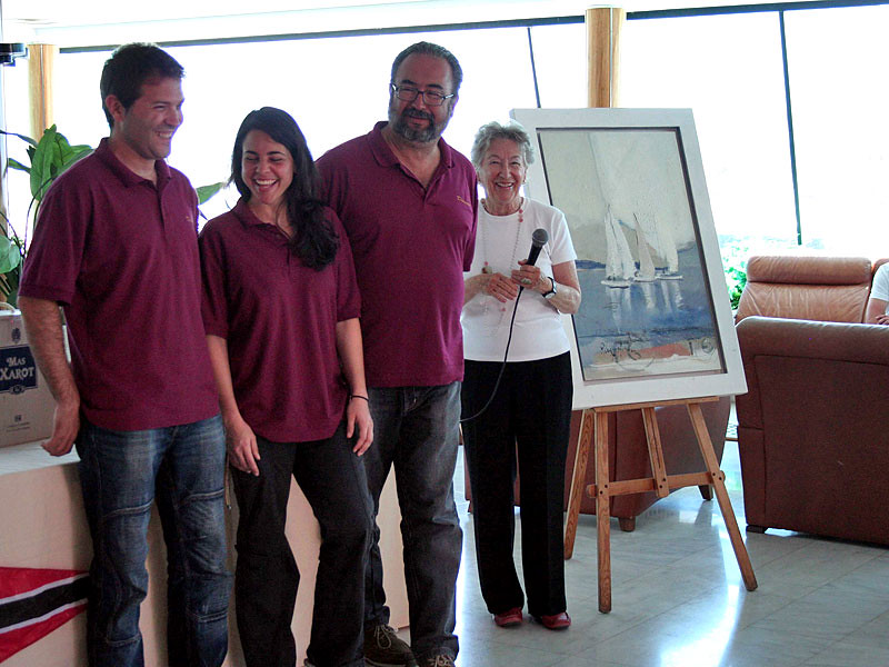 Y el domingo, en las instalaciones del Club Náutico, tuvo lugar el Acto Oficial de Entrega de Trofeos, presidido por Margarita Llopart, Regidora de Turisme de l’Ajuntament de Pollença, Francisco Cabrer, Vicepresident del RC Nautic de Port Pollença, Francisco Hernandez Vocal del RCN Port de Pollença, la pintora Mabel Ruiz d’Hors que obsequio con un cuadro al Vencedor Absoluto de la Regata y Pepe Ferres Presidente de ANAM.