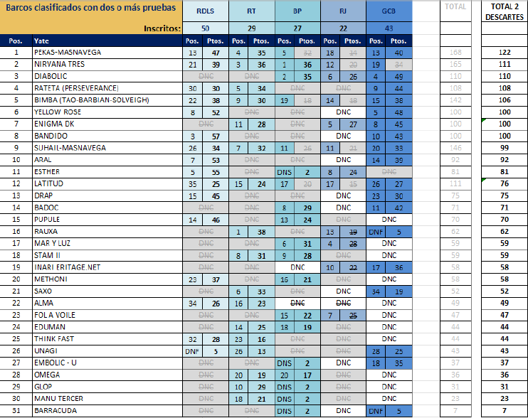 Clasificación con los barcos que han participado en solo una regata: //enregata.com/regatas/circuito-regatas-ausmar/